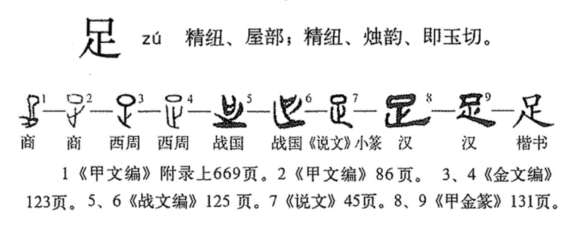 “足”字源演变过程: